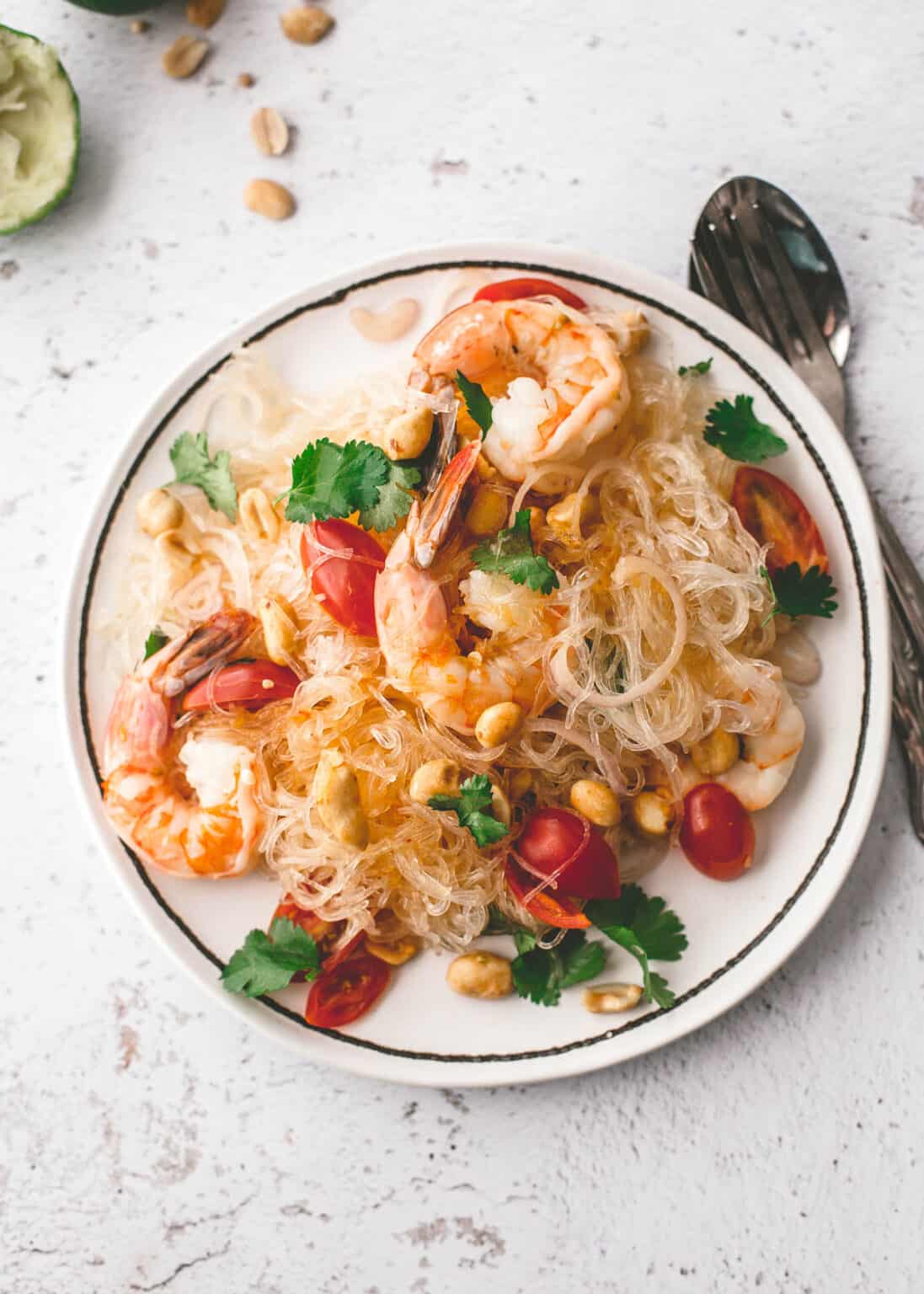 Glass Noodle Salad. Watch the video tutorial and follow the easy steps with ingredients and tips. Find the ingredients, method, variations,. Learn how to make a pork and noodle salad with fresh prawns, herbs and a thai dressing. Learn how to make a refreshing and vegan glass noodle salad with carrot, cucumber and a spicy dressing. Learn how to make yum woon sen, a classic thai salad with glass noodles, dried shrimp, pork, shrimp, tomato, onion and celery. A refreshingly light glass noodle salad that is packed with fresh vegetables, tossed through slippery potato starch noodles, soy sauce and sesame oil dressing. Learn how to make a simple and fresh thai noodle dish with mung bean noodles,. This recipe is easy, quick and perfect for sharing or as a meal on its own. Learn how to make harusame salad, a light and refreshing salad with glass noodles,. Slippery glass noodle salad is cold and delicious